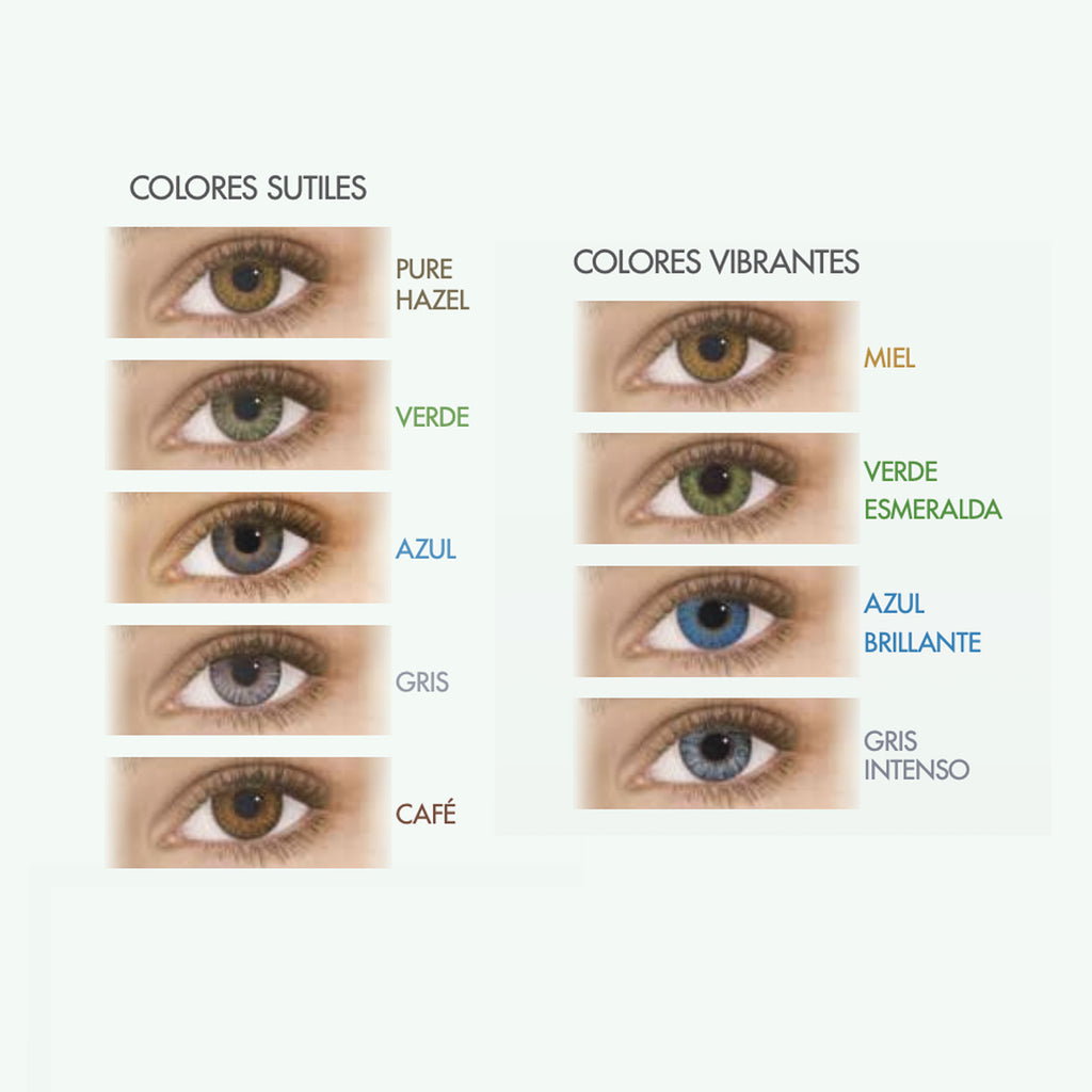 Air Optix™ Colors, lentes de contacto de colores diseñados para transformar los ojos oscuros o claros, con un efecto completamente natural, con o sin fórmula.